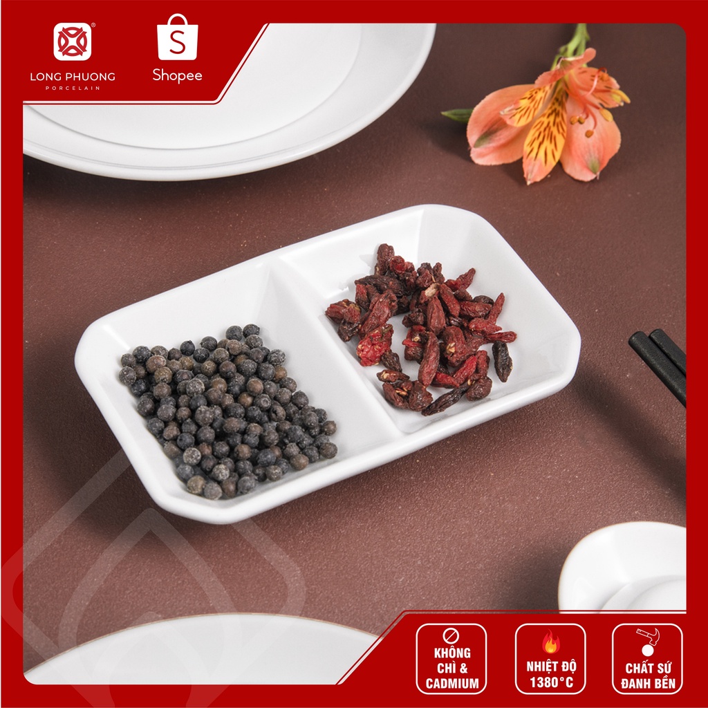 Đĩa Gia Vị Hai Ngăn 4.5'' Sứ Long Phương - Đĩa Đựng Nước Chấm