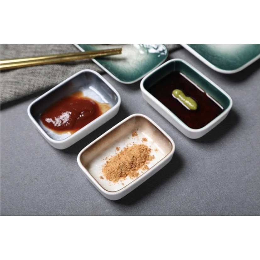 Đĩa gia vị, sốt, nước chấm hình chữ nhật - sứ cao cấp men vân đá chống xước phong cách Bắc Âu,