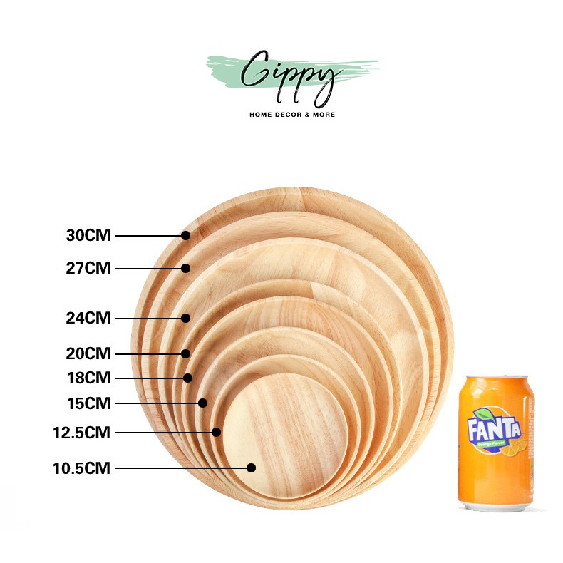 Giới thiệu Đĩa gỗ cao su tròn Nhật Bản nhiều size - Phụ kiện trang trí - Gippy Decor