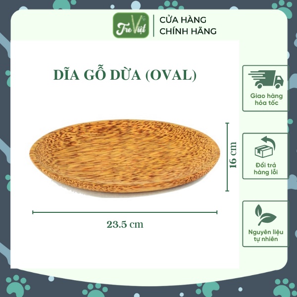 Dĩa gỗ dừa oval - Dĩa xoài - Coconut Wood Oval PlateChất liệu: gỗ dừa, được hoàn thiện bằng dầu dừa
