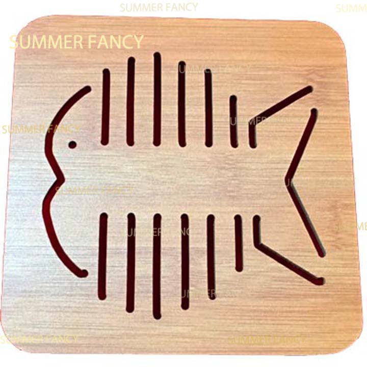 Giới thiệu Đĩa gỗ đựng bánh hình vuông khắc rỗng xương cá , cú mèo lót ly gỗ lót nồi gỗ coaster