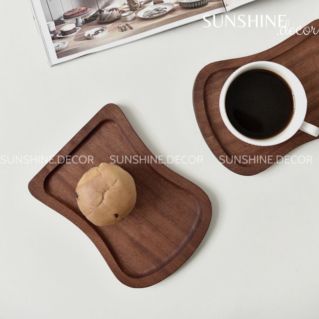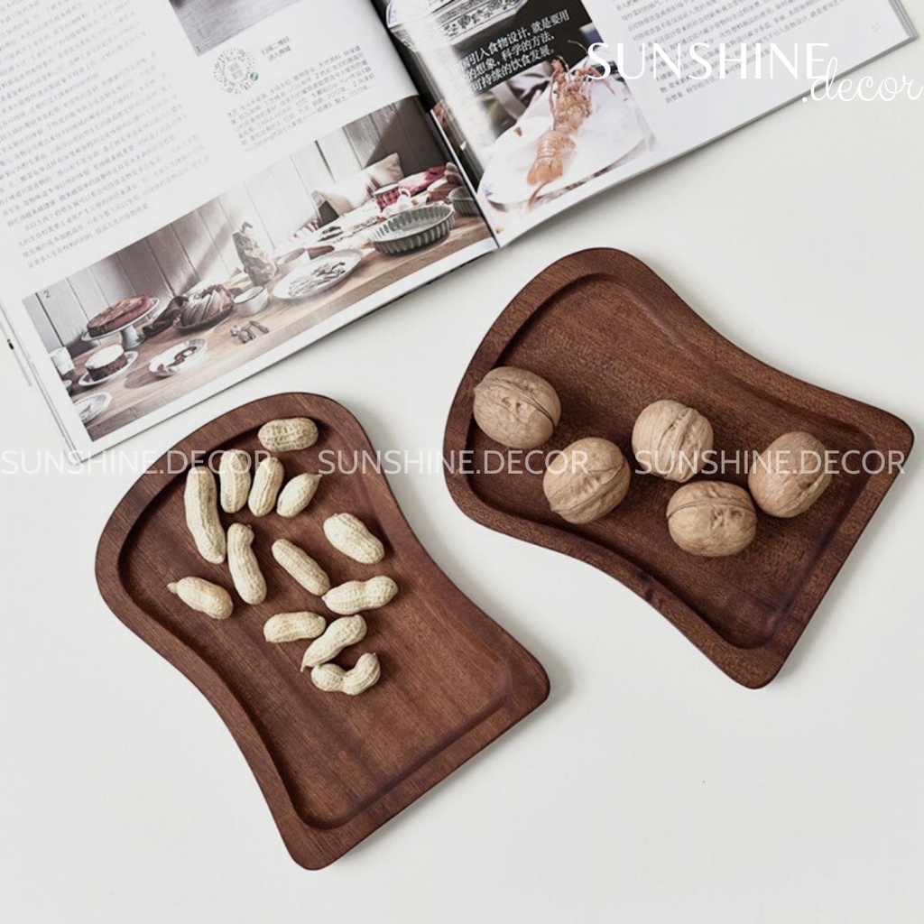 Đĩa gỗ hình bánh mì dễ thương, khay gỗ óc chó đựng đồ ăn chụp ảnh decor trang trí bàn ăn