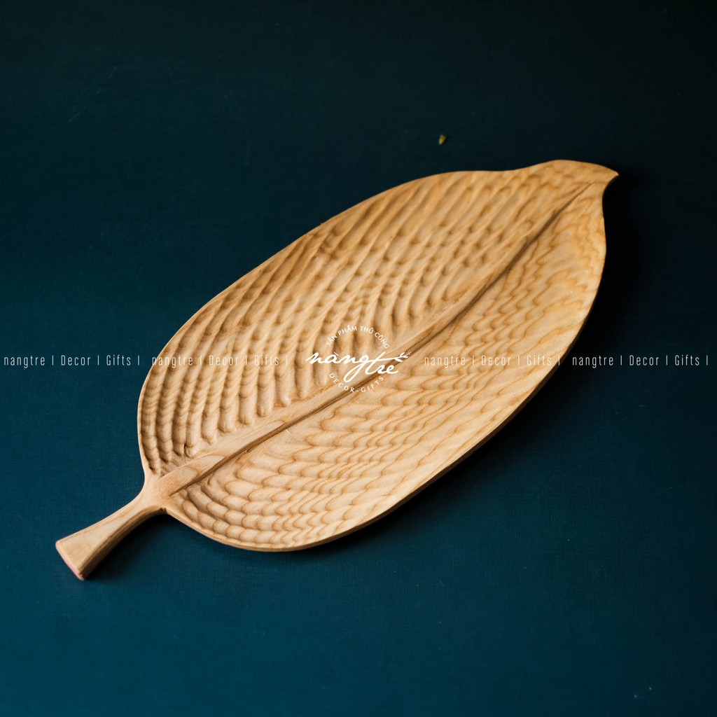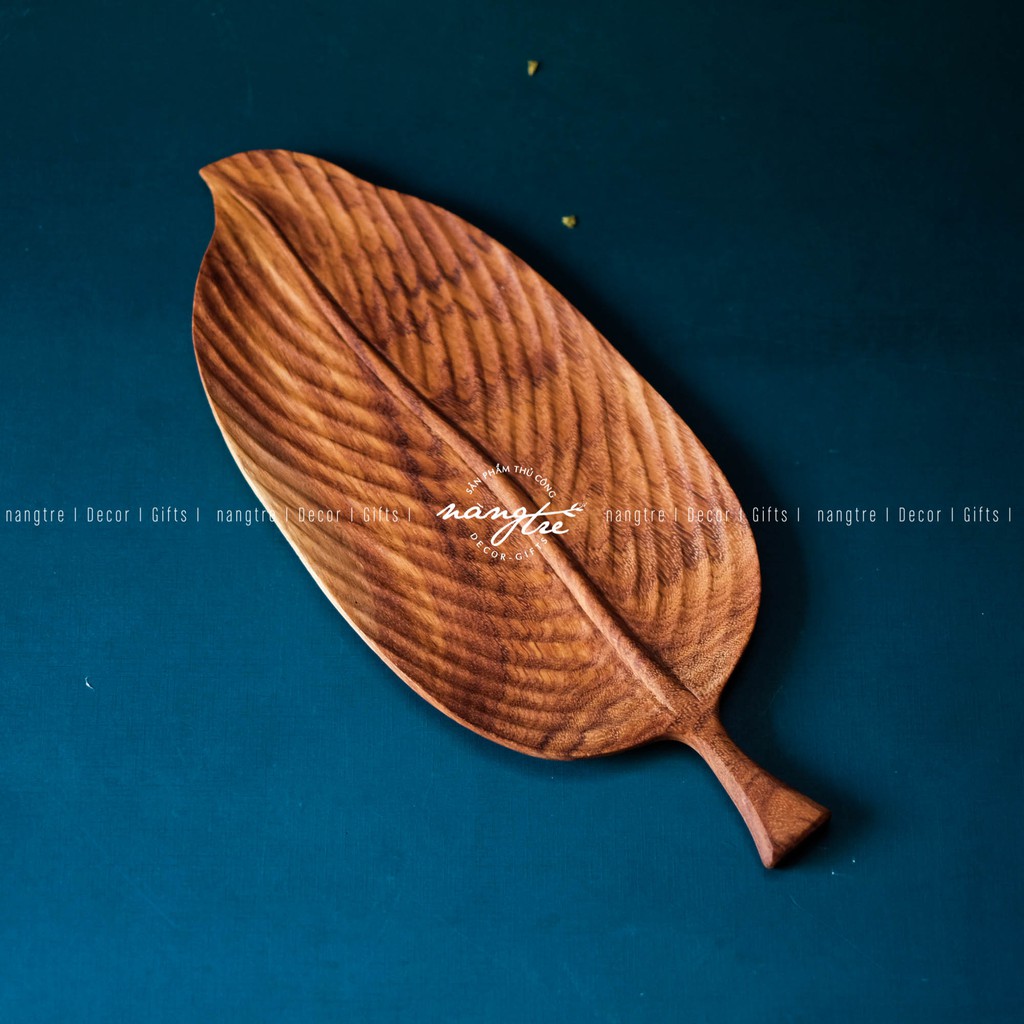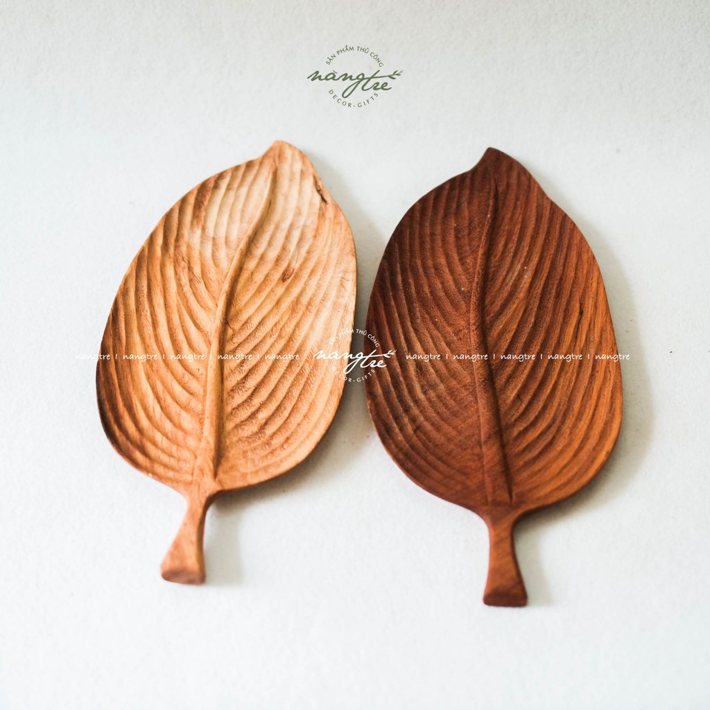 Đĩa gỗ hình lá/ Đĩa gỗ decor- Được sản xuất từ gỗ đỏ/ gỗ tần bì chất lượng, nguyên khối, có vân gỗ tự nhiên, chạm khắc độc đáo, phủ dầu oliu.