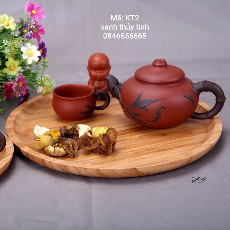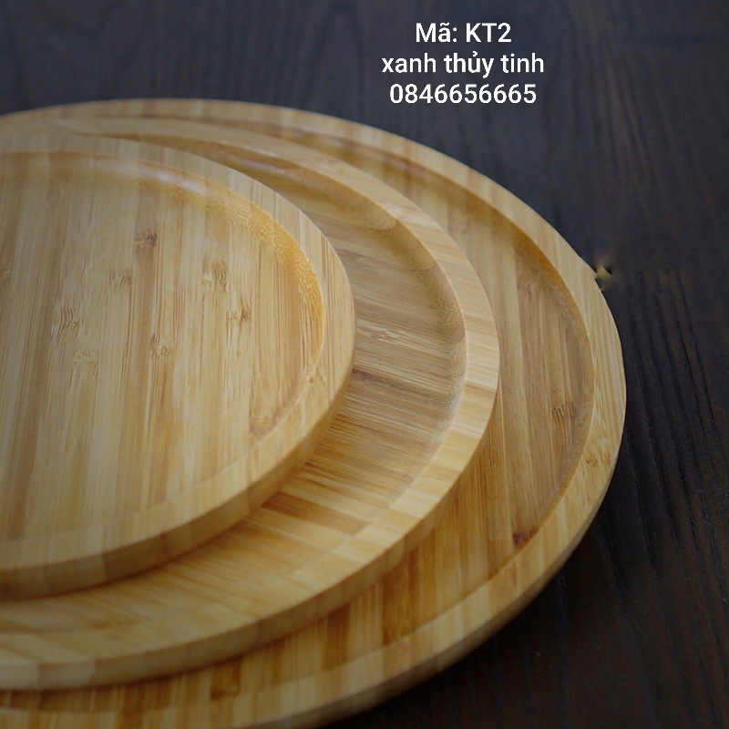 Đĩa gỗ tròn dày dặn, cứng cáp có thể dùng đựng ấm chén, hoa quả, bánh trái,... vô cùng tiện dụng.Đĩa có 2 cỡ: