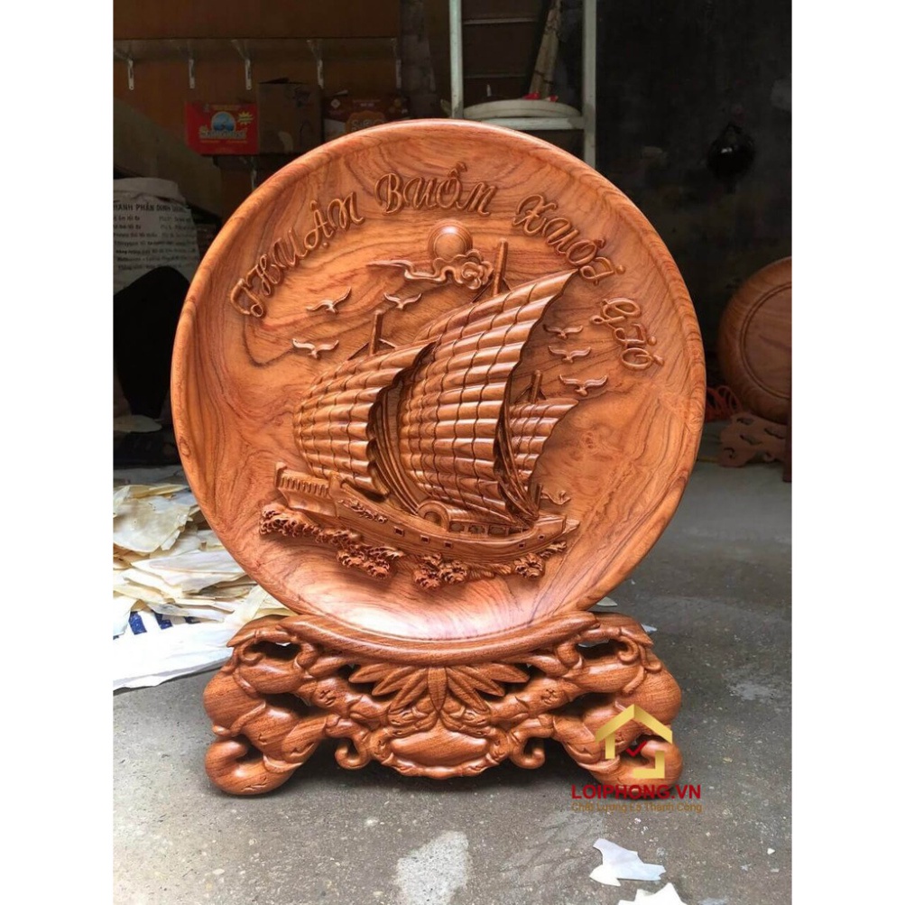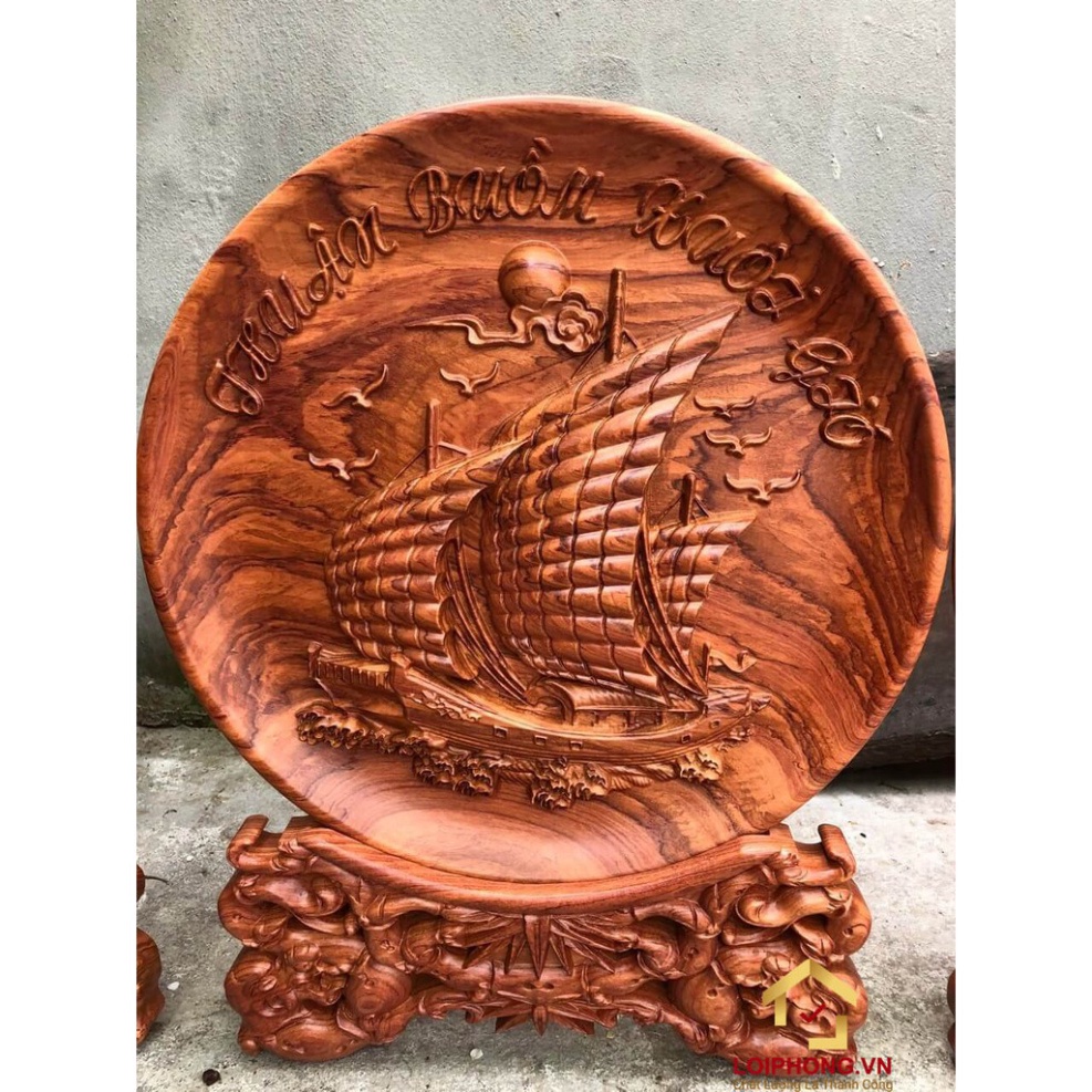 Đĩa gỗ trang trí thuận buồm xuôi gió bằng gỗ hương đường kính đĩa 30 - 35 - 40 cm dày 4 cmGiá đĩa gỗ trang trí đường kính 30 cm -dày 4 cm - đế 12cm