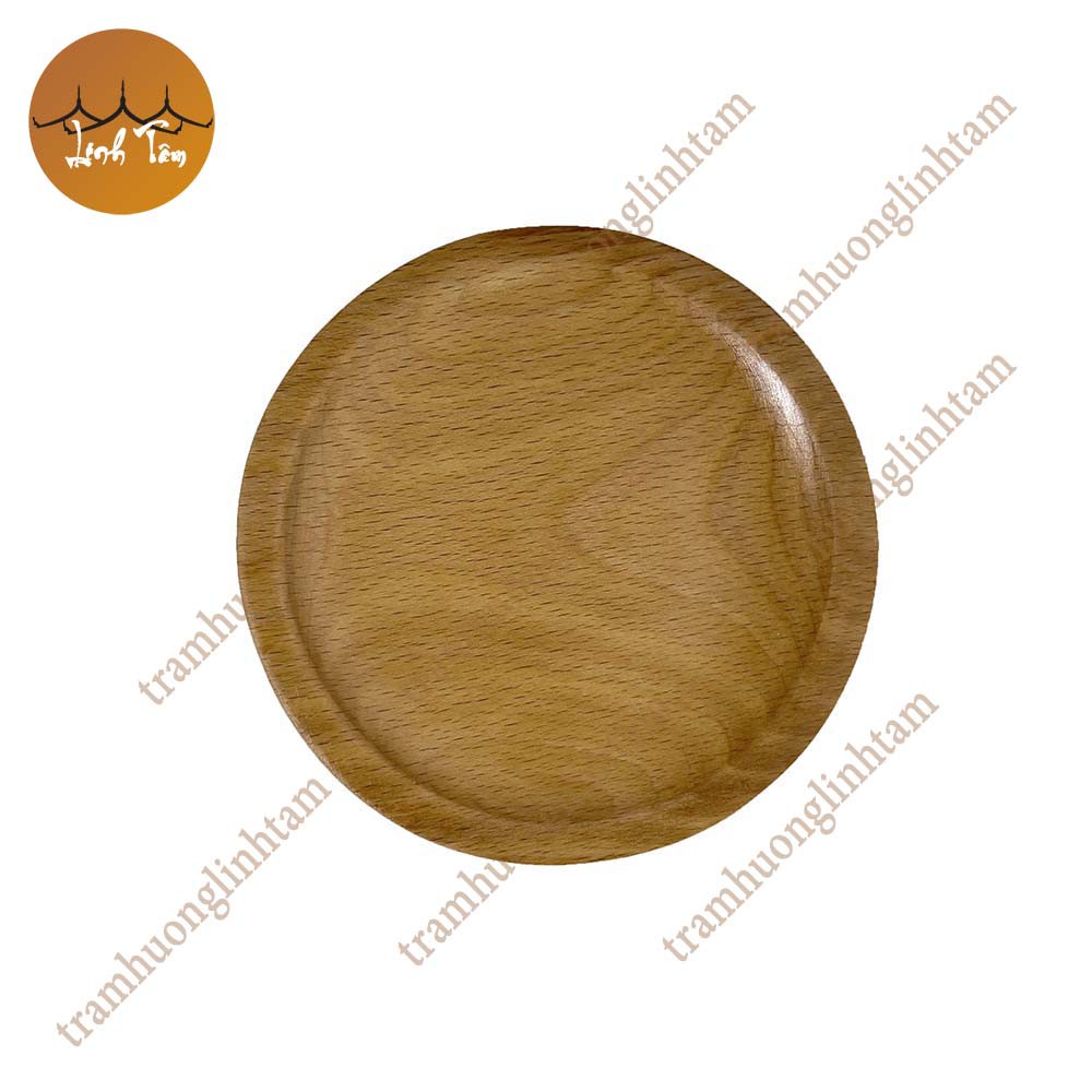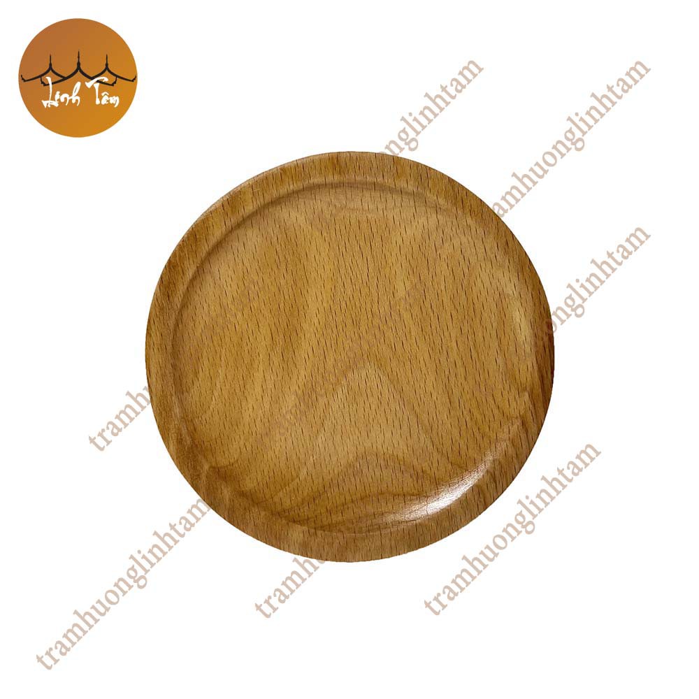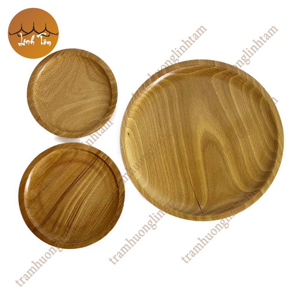 Đĩa gỗ tự nhiên nguyên khối màu sáng hình tròn đựng trà bánh đồ ăn đĩa gỗ decor phụ kiện phòng ăn