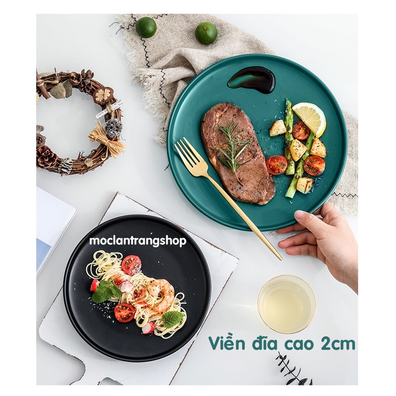 Đĩa ăn bít tết hình tròn đáy phẳng, màu men lì sang trọng, dành cho các bữa ăn gia đình, hội họp, hay decor trang trí món ăn. Đĩa sứ chất lượng tốt, viền cao 2cm, dày dặn.Có 3 loại kích thước