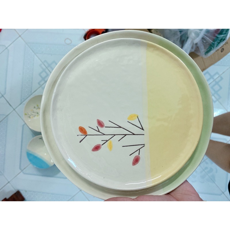 ĐĨA GỐM HOẠ TIẾT CÂY LÁ MÀU PASTEL TRANG TRÍ DECOR MÓN ĂN NHÀ CỬA