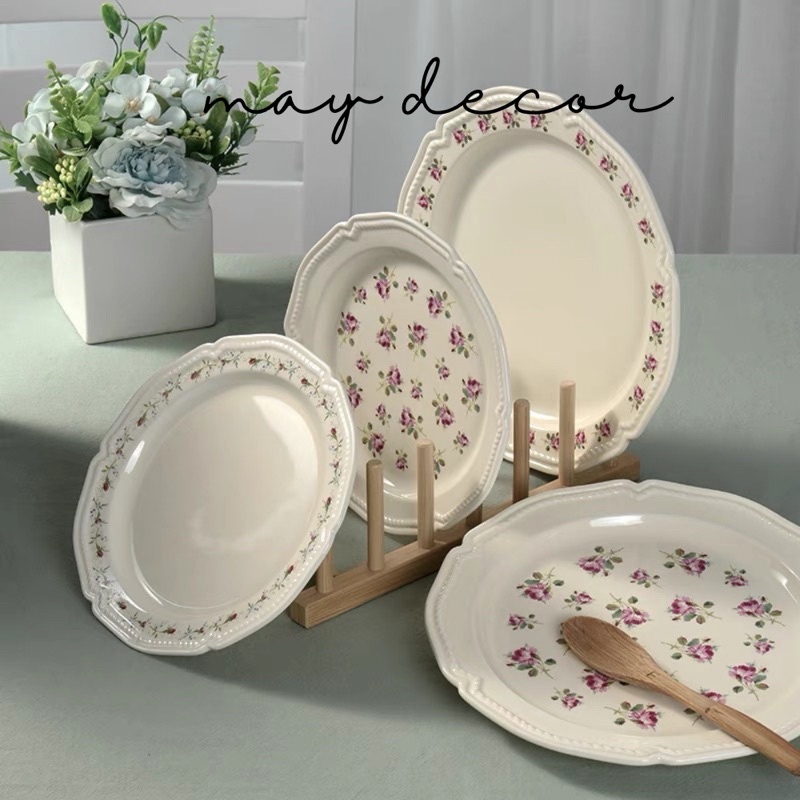 Nhà cửa & Đời sống > Bộ đồ bàn ăn > Dĩa || Đĩa gốm họa tiết hoa hồng tím Retro - may.decor -Còn hàng