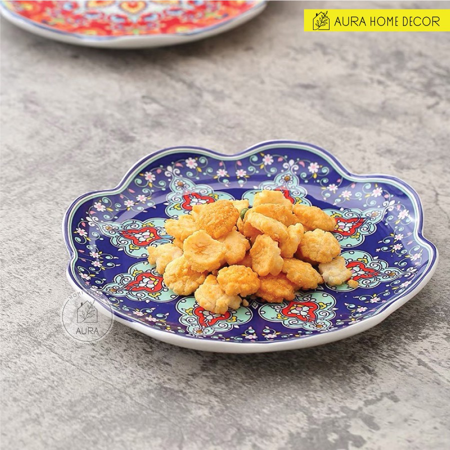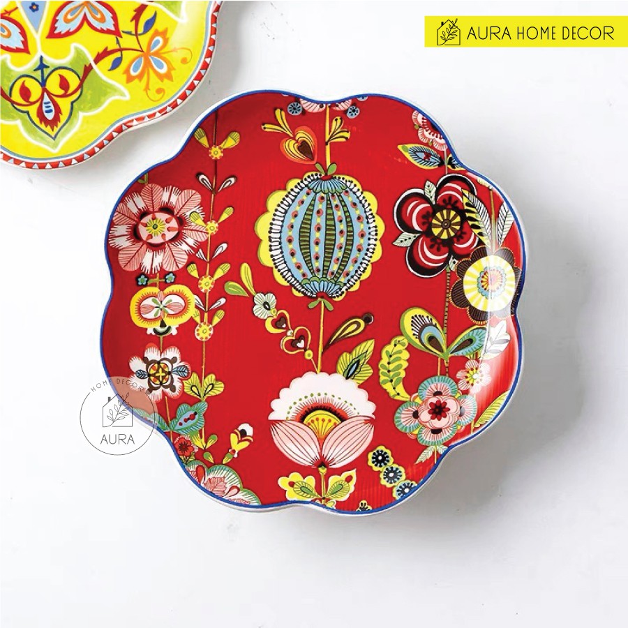 Nhà cửa & Đời sống > Bộ đồ bàn ăn > Dĩa || Đĩa gốm sứ họa tiết vẽ tay hình hoa cách điệu, màu sắc sặc sỡ mùa hèCòn hàng