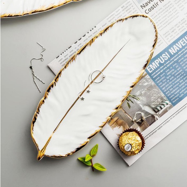 Đĩa gốm sứ lông vũ viền vàng sang trọng- Dùng làm đĩa decor cho các shop , đựng trang sức mỹ phẩm , làm nền chụp ảnh sp rất đẹp & sang