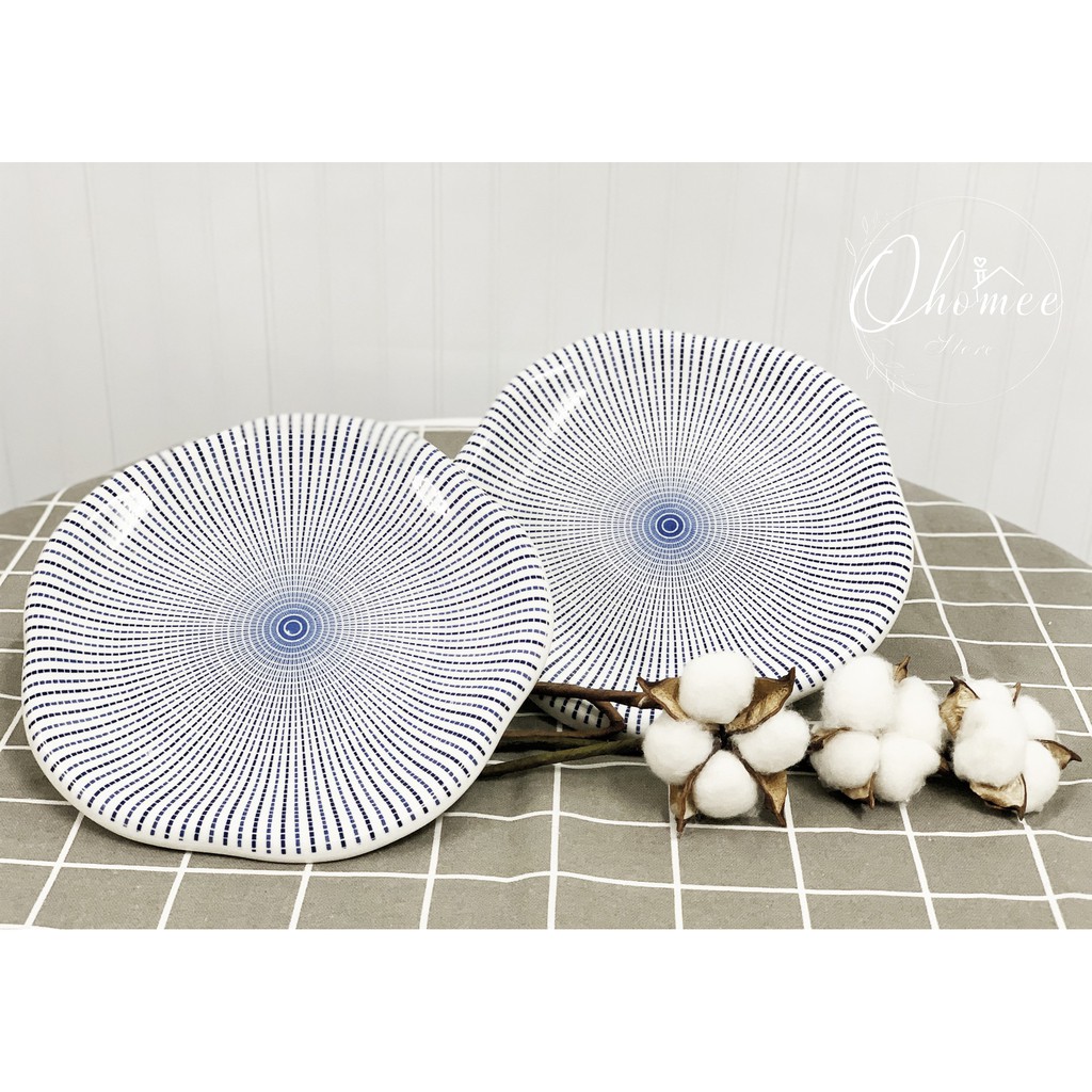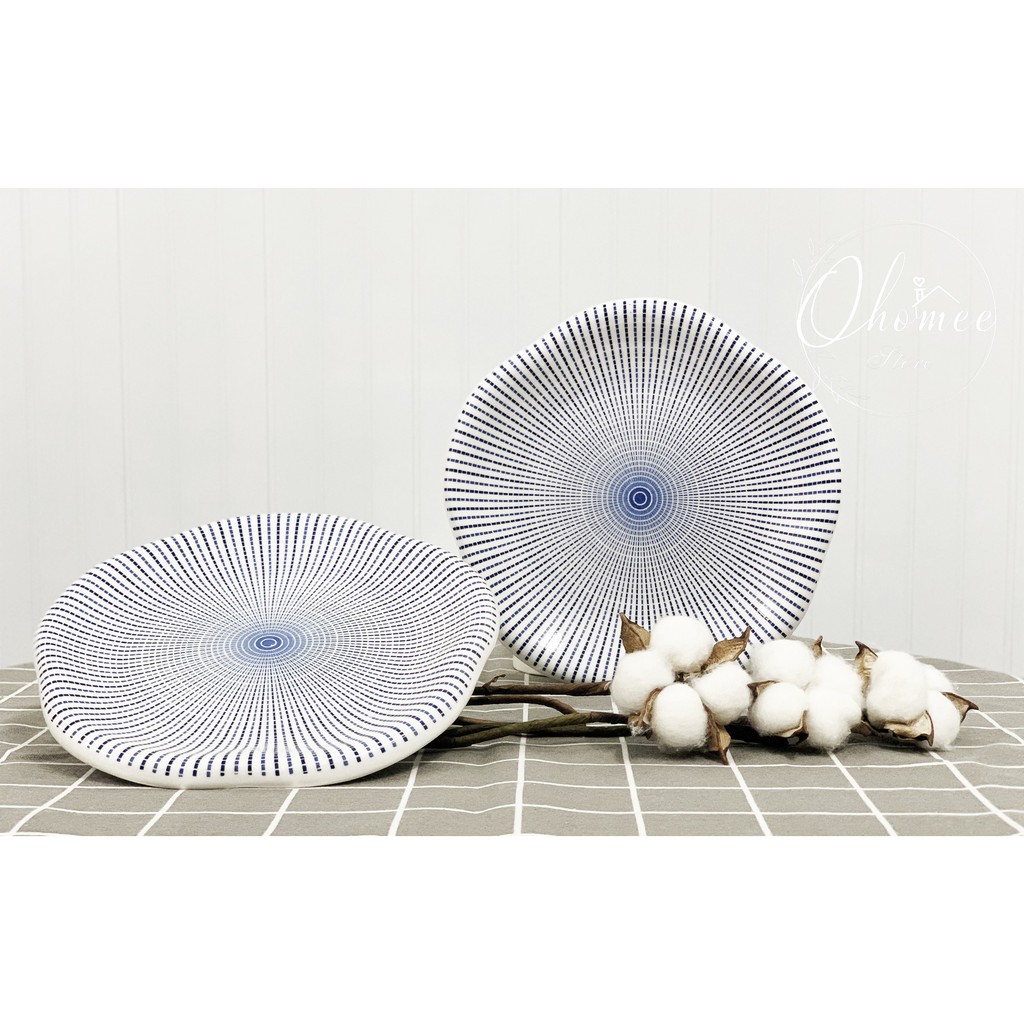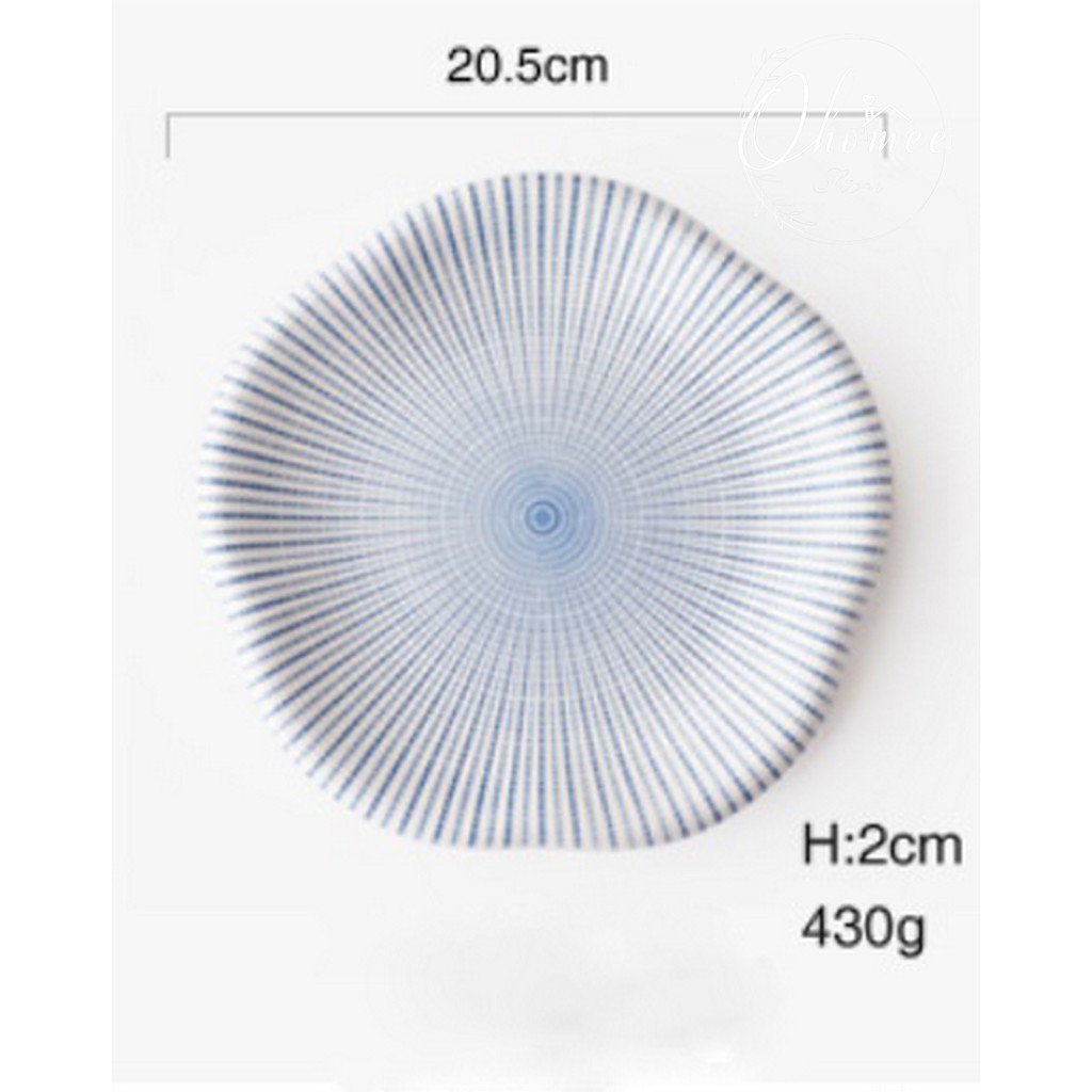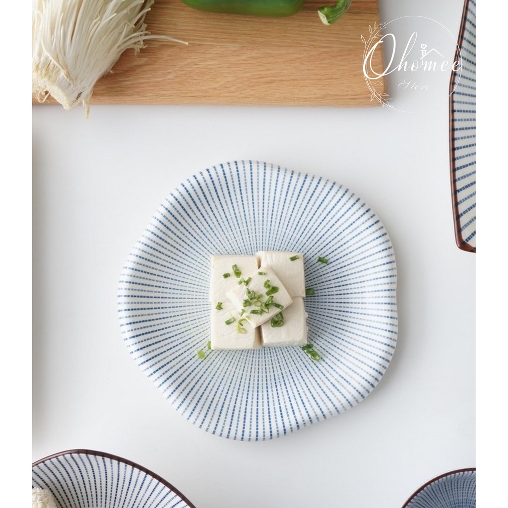 Nhà cửa & Đời sống > Bộ đồ bàn ăn > Dĩa || Đĩa Gốm Sứ Nhật Sọc Xanh Viền HoaCòn hàng