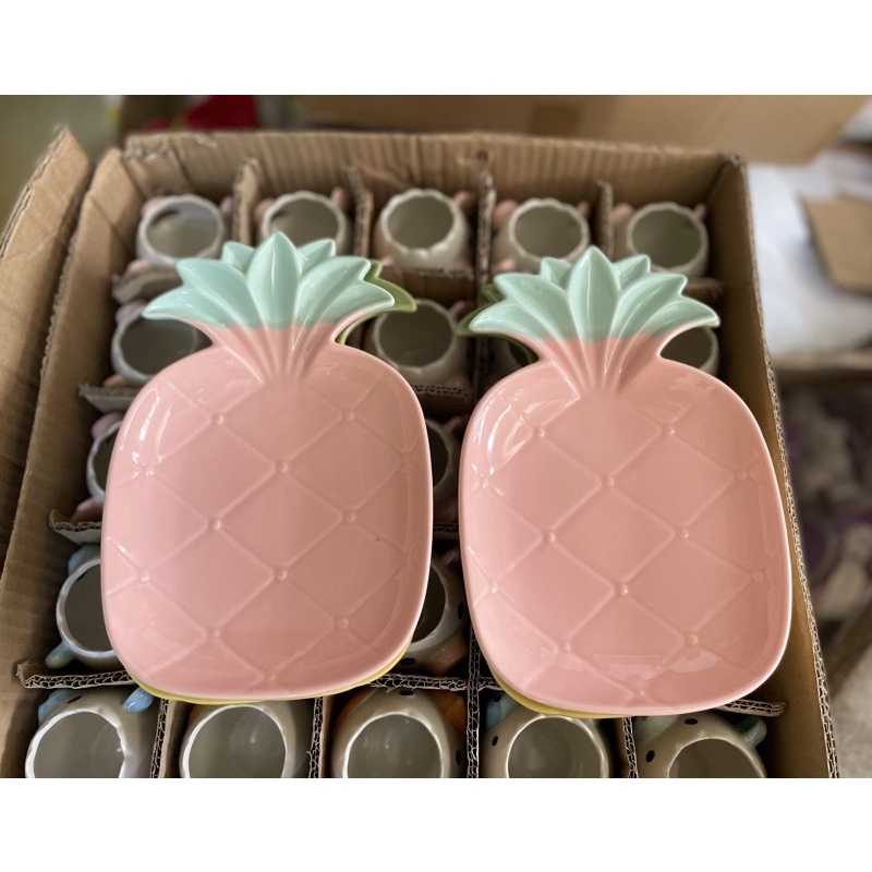 Đĩa Gốm Sứ Tráng Men Hình Trái Dứa