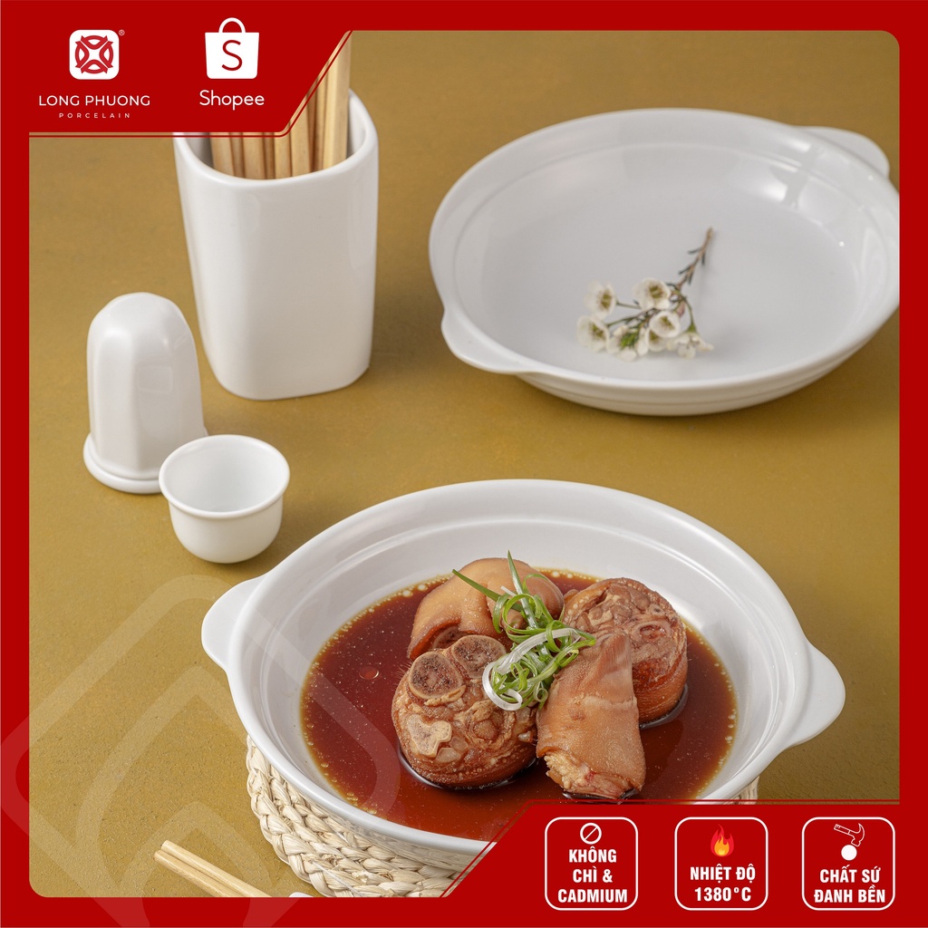 Nhà cửa & Đời sống > Bộ đồ bàn ăn > Dĩa || Đĩa hai tai - Đĩa sâu lòng có quai cầm sứ Long Phương cao cấpCòn hàng