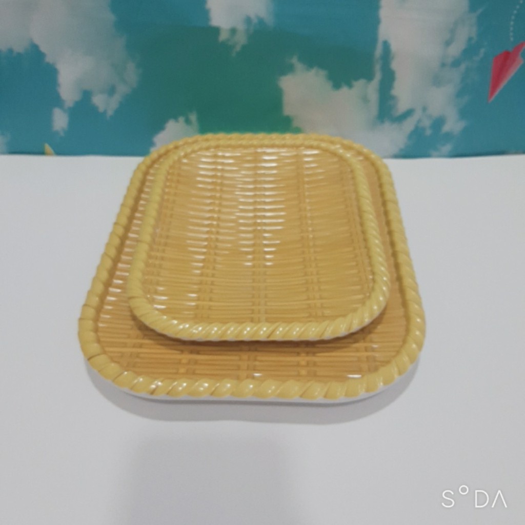Dĩa hình chữ nhật giả mây tre Nhựa Melami Cao Cấp nhiều size-Chất liệu Melamine cao cấp sang trọng.