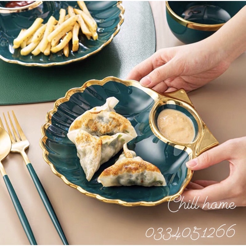 Đĩa sò lại còn có viền vàng khiến chiếc đĩa trở nên phần sang hơn ạ
