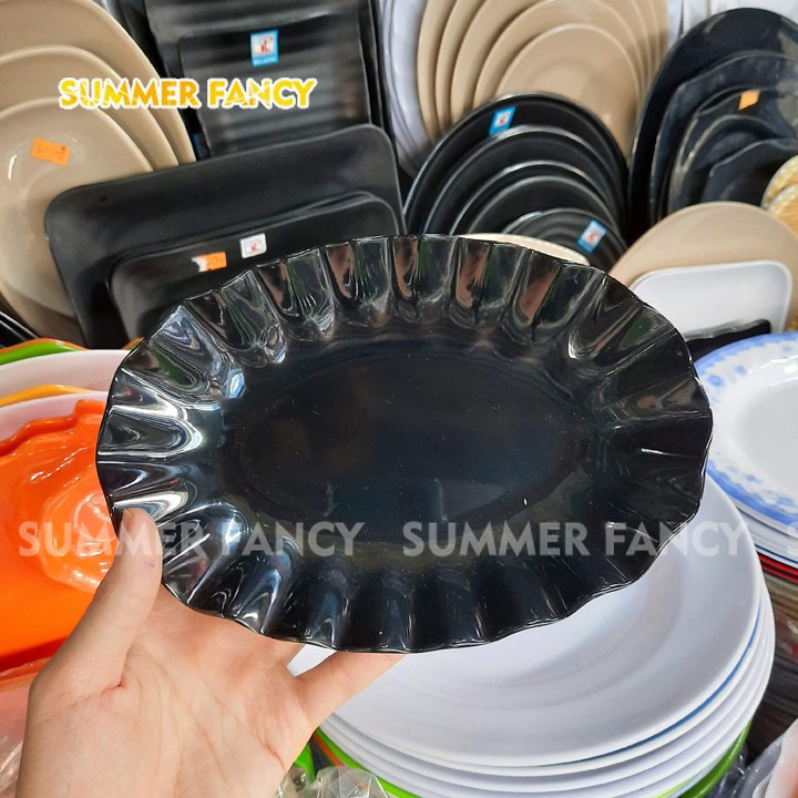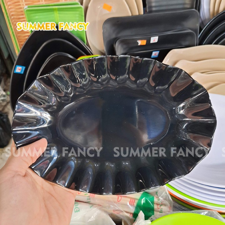 Nhà cửa & Đời sống > Bộ đồ bàn ăn > Dĩa || Dĩa hoa bèo oval 19.6 x 13.5cm nhựa melamine phíp màu đen - dùng cho nhà hàng quán ăn F-DH66Còn hàng