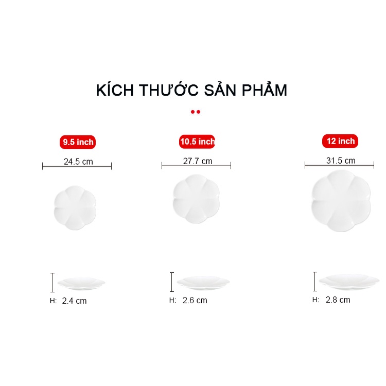 + Size 12 inch: Chiều rộng 31.5cm, cao 2.8cm
