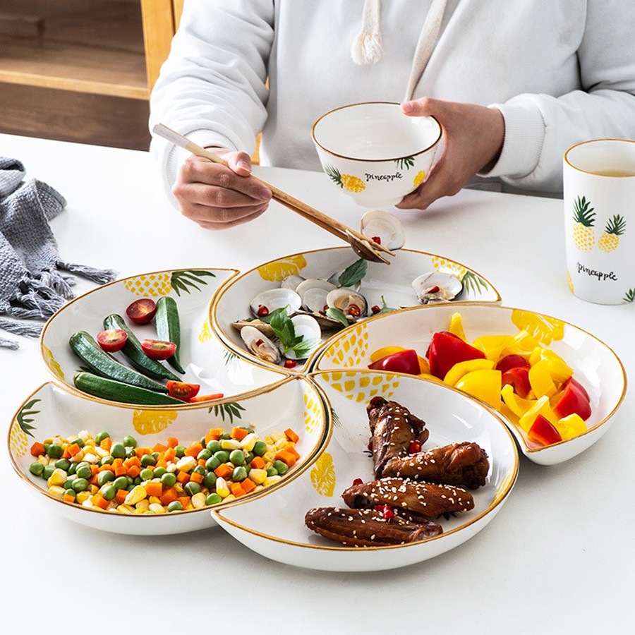 Nhà cửa & Đời sống > Bộ đồ bàn ăn > Dĩa || Đĩa hoa, đĩa sứ họa tiết dứa vàng xếp hình cánh hoa cao cấpCòn hàng
