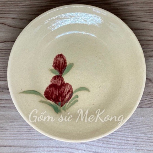 Nhà cửa & Đời sống > Bộ đồ bàn ăn > Dĩa || Dĩa hoa lan nâu 20cm vẽ tay hoạ tiết hoại niệm dĩa xưa theo dòng gốm sứ Nam bộ truyền thốngCòn hàng