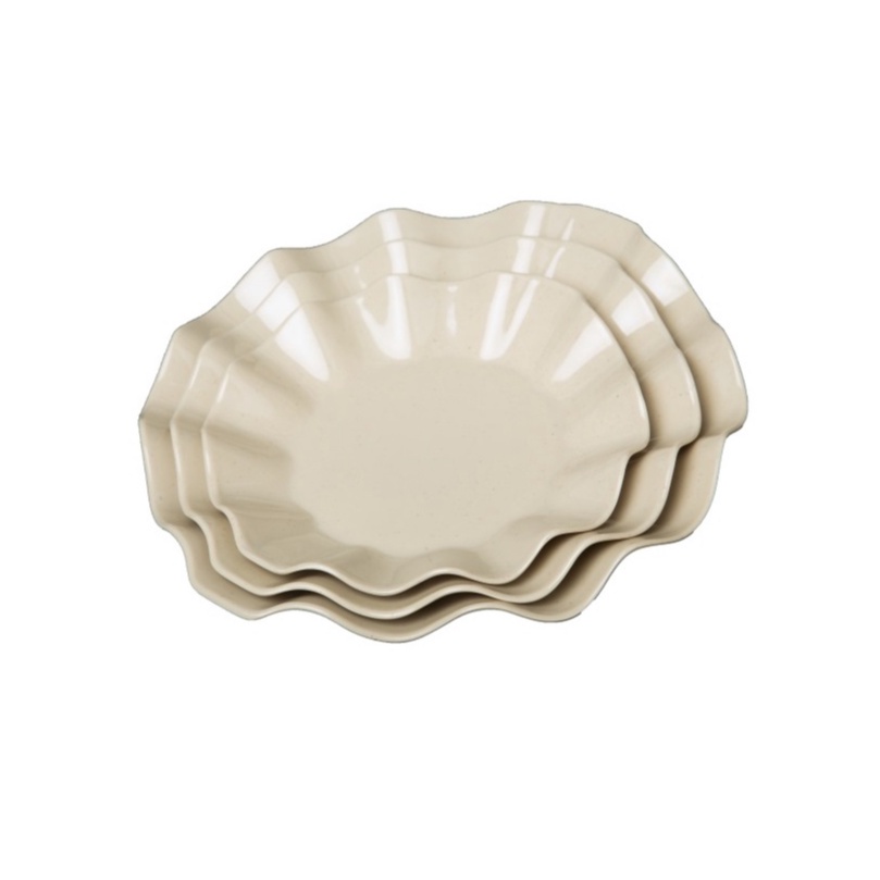 Dĩa hoa nhựa 22.4cm melamine màu nâu kem, đĩa phíp tròn bèo - F-DH08