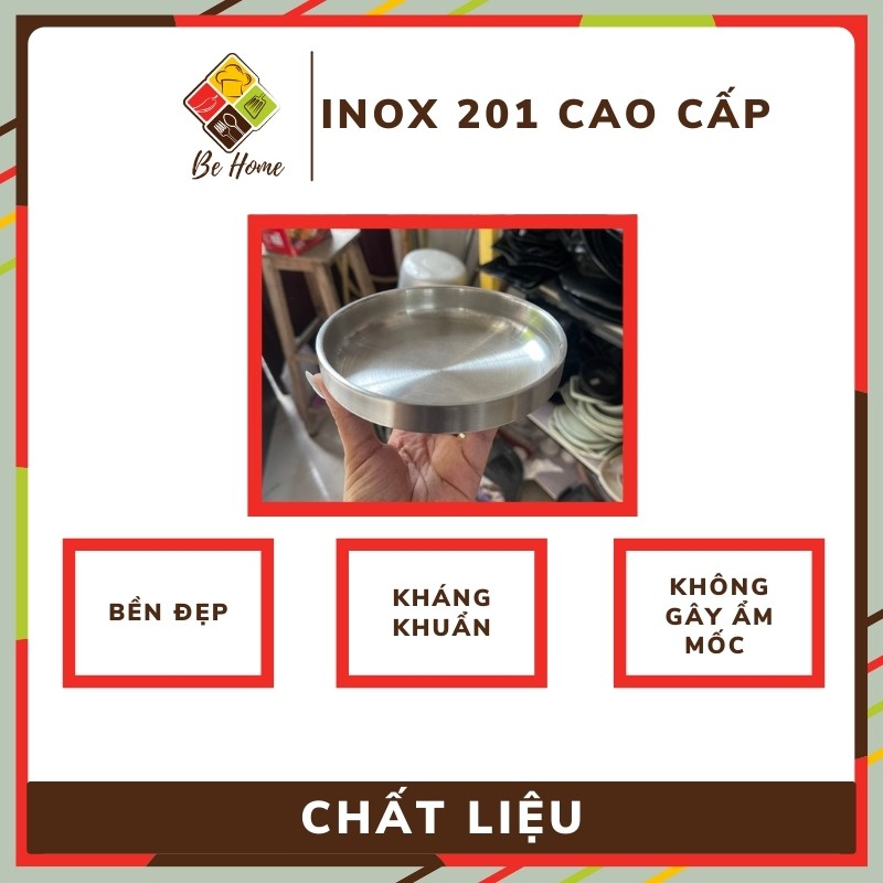 💓BEHOME-MALL💓✪ Sản phẩm Đĩa Inox cách nhiệt được làm 100% từ inox 201 cao cấp (inox xước) cực kỳ bền đẹp, giúp kháng khuẩn, không gây ẩm mốc và mùi khó chịu. Nhờ đó, khi đựng thức ăn luôn đảm bảo vệ sinh an toàn thực phẩm.