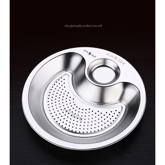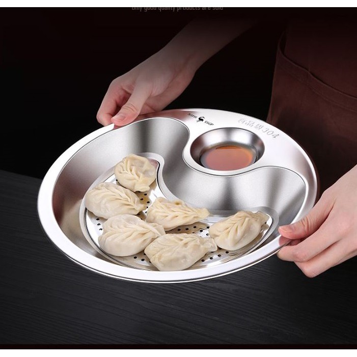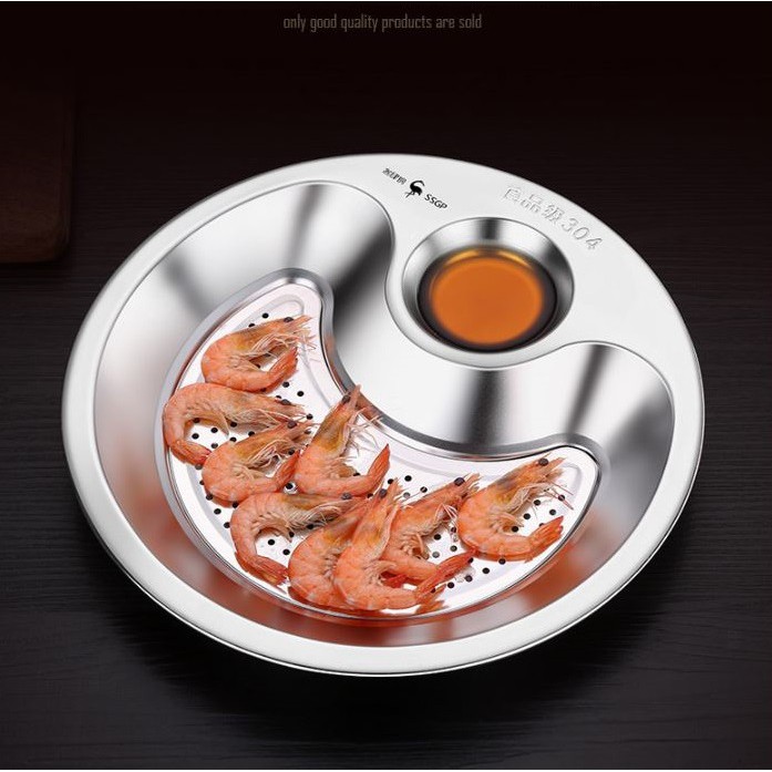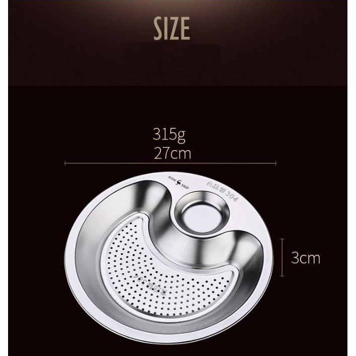 Giới thiệu Dĩa khay inox 304 kèm vỉ ráo dầu và ráo nước có ô đựng nước chấm thích hợp hấp há cảo hấp tôm - SSGP - 27x3cm 315g