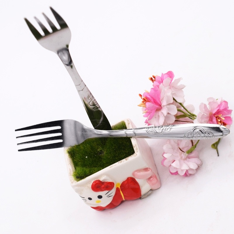 Dĩa inox ăn hoa quả, nĩa inox ăn trái cây cán dài in hoa văn- hàng đẹp - kho sỉ mb