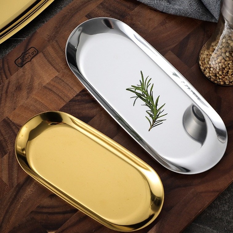 Nhà cửa & Đời sống > Bộ đồ bàn ăn > Dĩa || Đĩa Inox bầu dục Khay Đa Năng Màu Sắc Sang TrọngCòn hàng