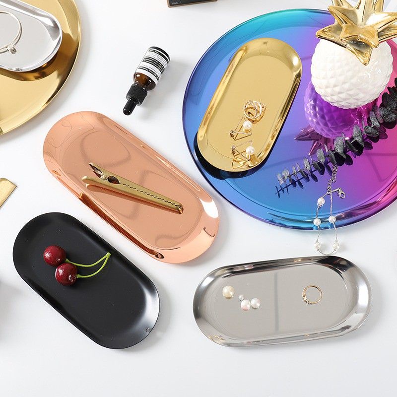 Đĩa Inox bầu dục Khay Đa Năng Màu Sắc Sang Trọng