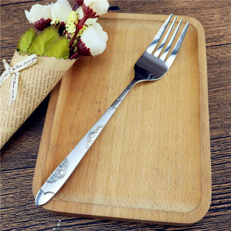 Dĩa Inox Cán Có Hoa Văn Đẹp Mắt dài 17cm