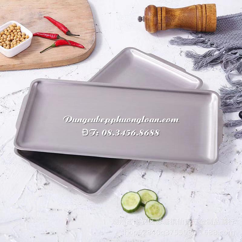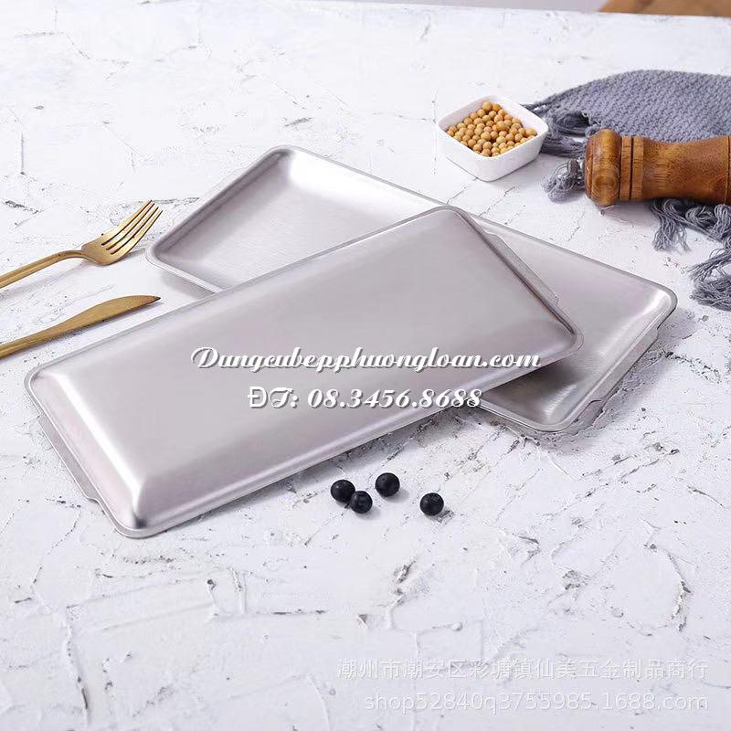 Đĩa Inox Hàn Quốc, khay Inox Hàn Quốc hình chữ nhật, inox 304 với 3 size 22x14cm, 32x16cm và 36x20cm