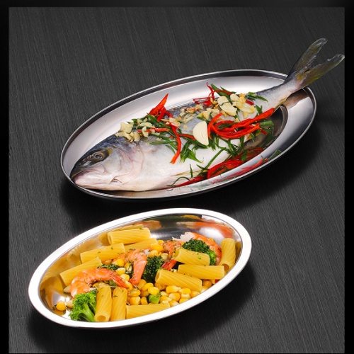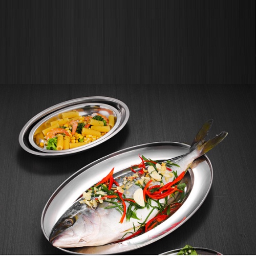 Đĩa inox hình oval, đĩa inox hình bầu dục- Dùng để đựng cá rất bắt mắt