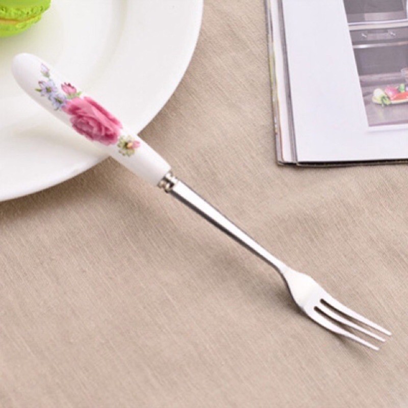 Dĩa inox loại 1 cán sứ hoa hồng cao cấp