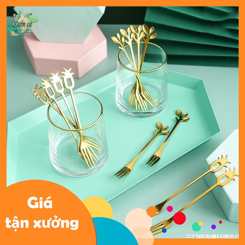 Tên SP: Dĩa inox mạ vàng có chuôi hình lá cao cấp phong cách Châu Âu - VS159Mã SP: VS159