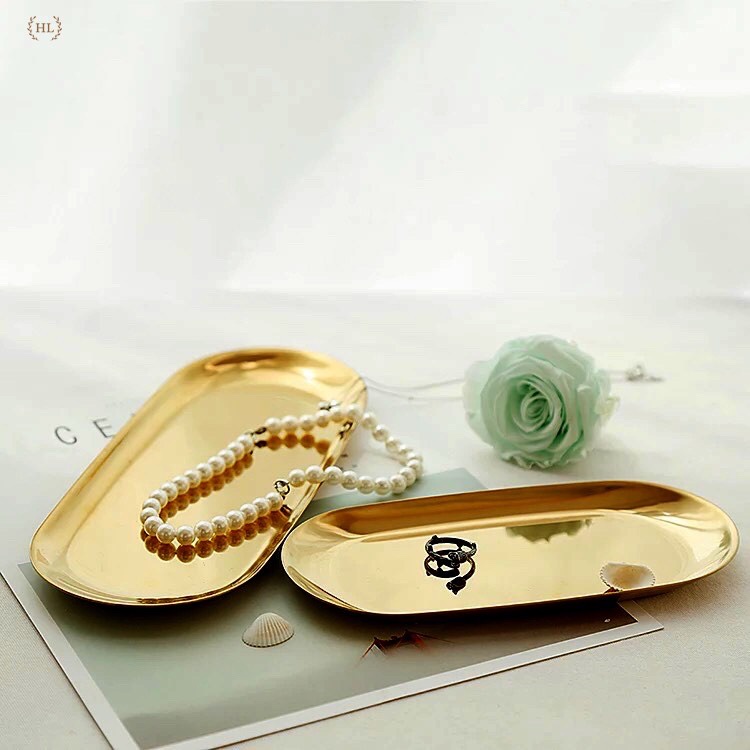 Giới thiệu Đĩa inox mạ vàng hình bầu dục, đĩa inox đựng đồ ăn vặt, Decor phòng khách sạn HL (đĩa inox không ăn mòn)