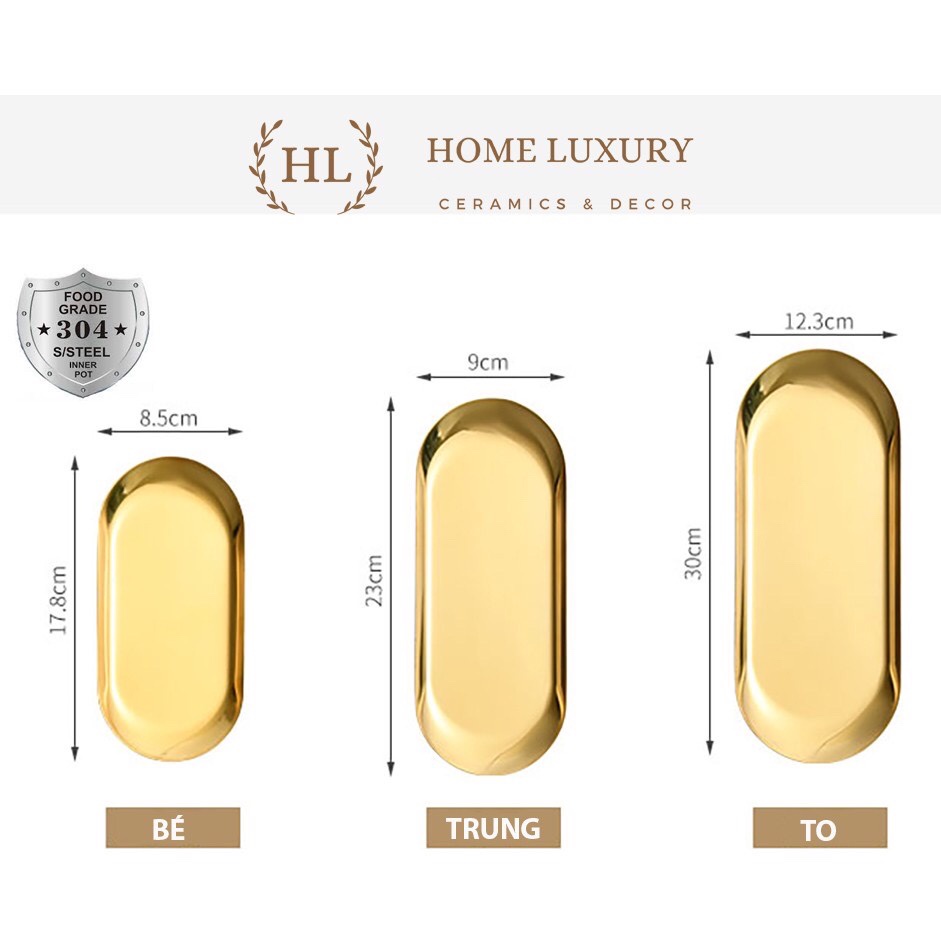 Nhà cửa & Đời sống > Bộ đồ bàn ăn > Dĩa || Đĩa inox mạ vàng hình bầu dục, đĩa inox đựng đồ ăn vặt, Decor phòng khách sạn HL (đĩa inox không ăn mòn)Còn hàng