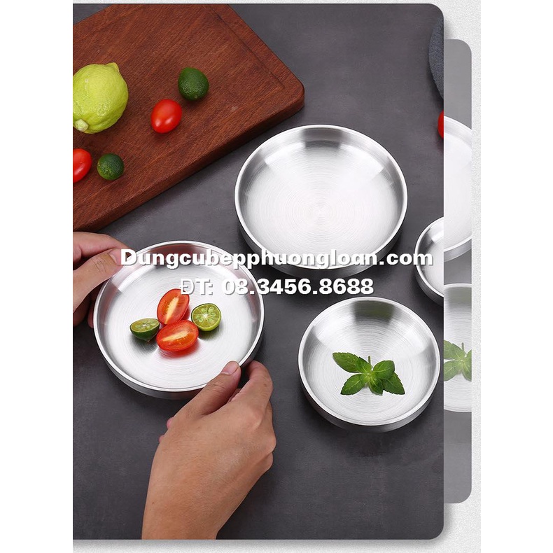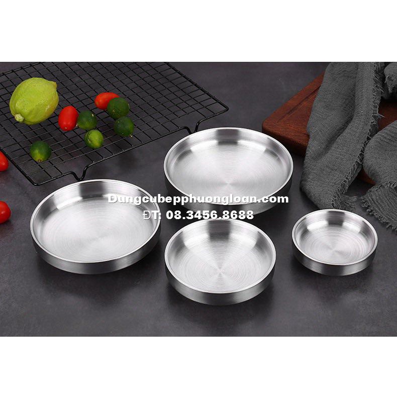 Đĩa Inox tròn 2 lớp cách nhiệt phong cách Hàn Quốc siêu sang trọng