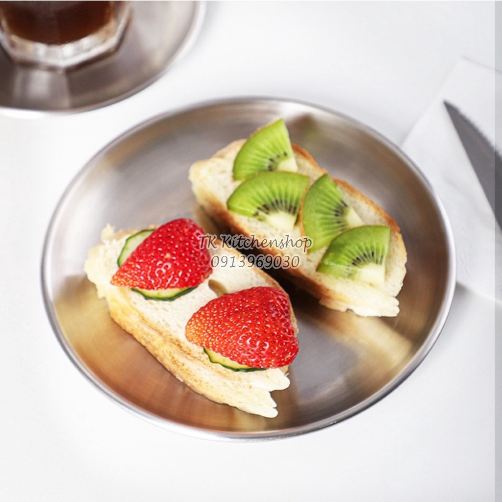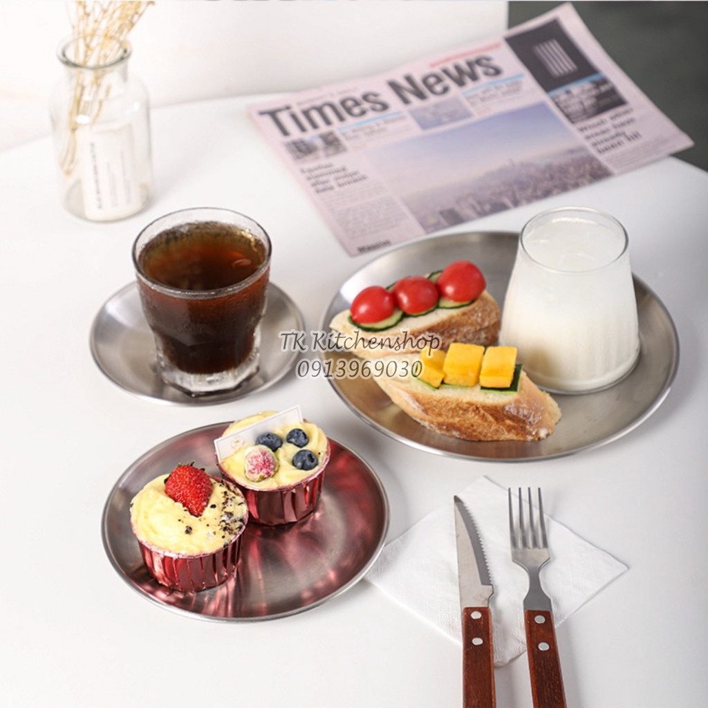 Nhà cửa & Đời sống > Bộ đồ bàn ăn > Dĩa || Đĩa inox tròn Hàn Quốc 17cm chất liệu inox mờ 304 cao cấp đựng bánh, hoa quả, kiểu dáng hiện đại, giúp decor món ănCòn hàng