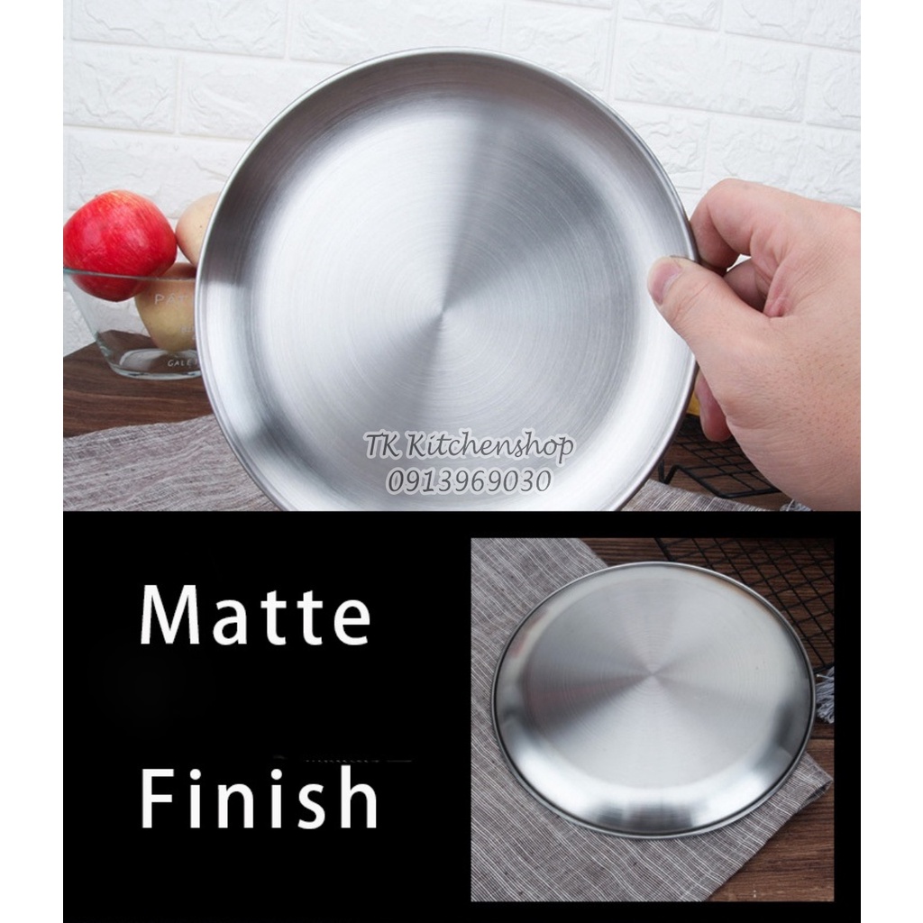 Đĩa Tròn Inox Hàn Quốc✪ Sản phẩm được làm 100% từ inox cao cấp (inox xước) cực kỳ bền đẹp, giúp kháng khuẩn, không gây ẩm mốc và mùi khó chịu. Nhờ đó, khi đựng thức ăn luôn đảm bảo vệ sinh an toàn thực phẩm.
