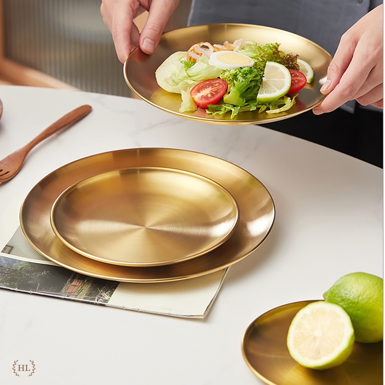 ĐĨA INOX VÀNG KHÔNG ĂN MÒN CAO CẤP 2022 | Đĩa Inox vàng nông chuyên dụng ăn salat , mỳ ý , đồ ăn vặt.... Hàn Quốc