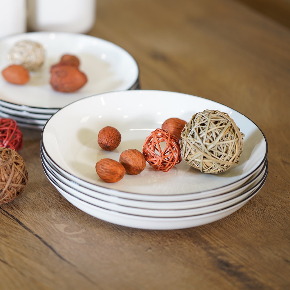 Nhà cửa & Đời sống > Bộ đồ bàn ăn > Dĩa || Đĩa | JYSK nID | sứ trắng bóng viền đen | DK24.3x5.5cmCòn hàng