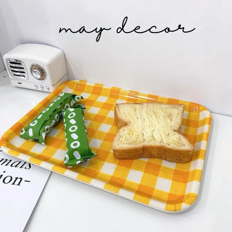 Nhà cửa & Đời sống > Bộ đồ bàn ăn > Dĩa || Đĩa kẻ sọc vàng trang trí -may.decor-Còn hàng