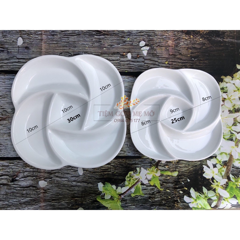 Nhà cửa & Đời sống > Bộ đồ bàn ăn > Dĩa || Đĩa Khay bày đồ ăn trang trí thức ăn kèm ngăn gia vị nước chấm men trắng gốm sứ Bát TràngCòn hàng
