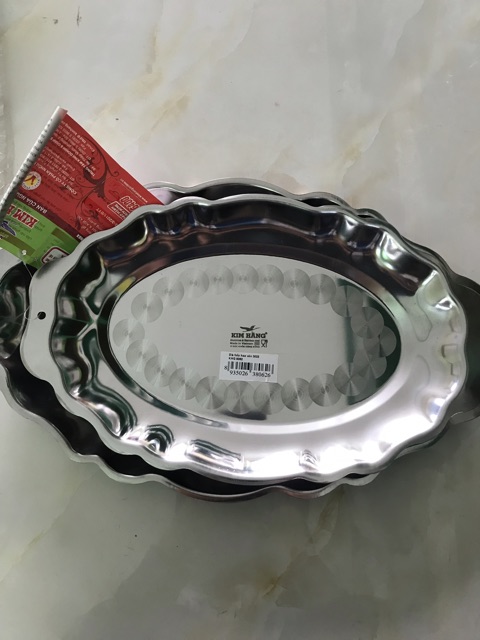 Nhà cửa & Đời sống > Bộ đồ bàn ăn > Dĩa || Dĩa khay inox hoa văn KIM HẰNG chính hãng size lớn 40x25cm size nhỏ 35x22cmCòn hàng