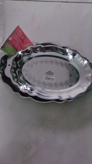 Dĩa khay inox hoa văn KIM HẰNG chính hãng size lớn 40x25cm size nhỏ 35x22cm