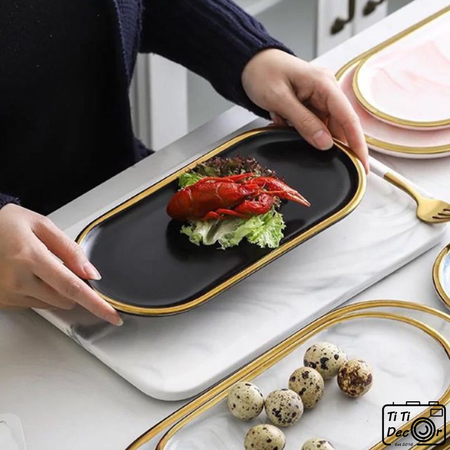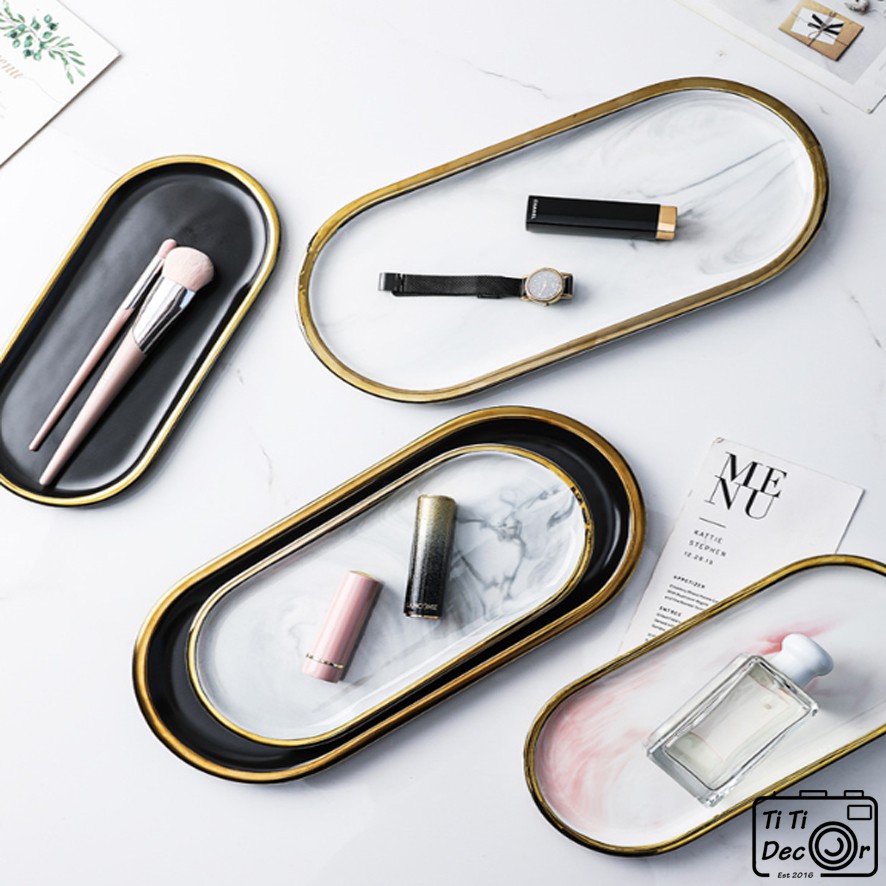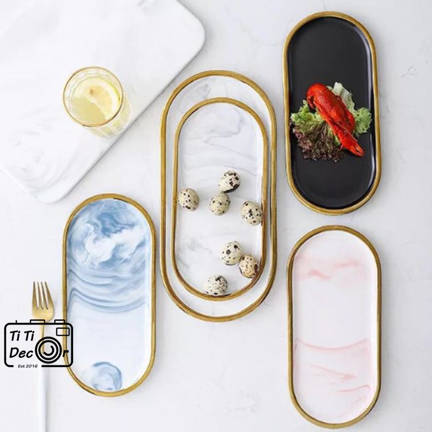 Nhà cửa & Đời sống > Bộ đồ bàn ăn > Dĩa || Dĩa, khay oval viền gold trang trí chụp ảnh, decor nhà cửa, cửa hàngCòn hàng