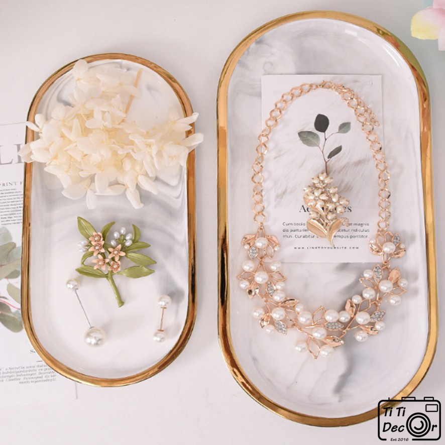 Dĩa, khay oval viền gold trang trí chụp ảnh, decor nhà cửa, cửa hàng