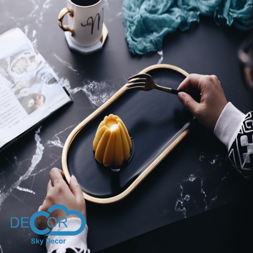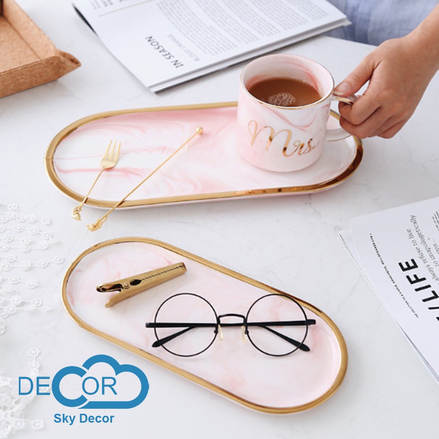 DĨA, KHAY OVAL VIỀN GOLD VÂN ĐÁ TRANG TRÍ NHÀ CỬA, ĐẠO CỤ CHỤP ẢNH SẢN PHẨM
