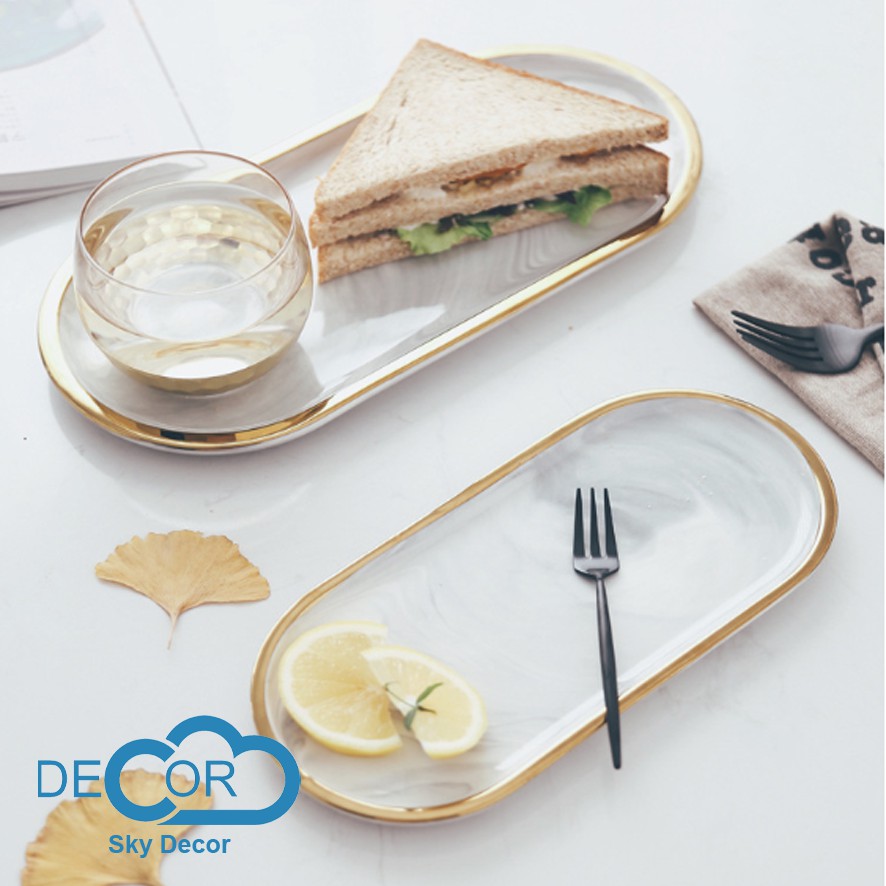 Nhà cửa & Đời sống > Bộ đồ bàn ăn > Dĩa || DĨA, KHAY OVAL VIỀN GOLD VÂN ĐÁ TRANG TRÍ NHÀ CỬA, ĐẠO CỤ CHỤP ẢNH SẢN PHẨMCòn hàng